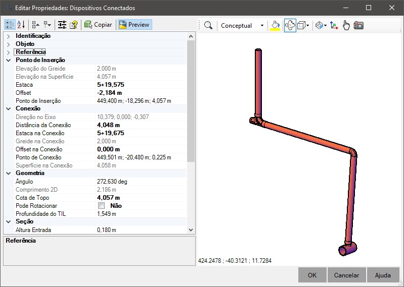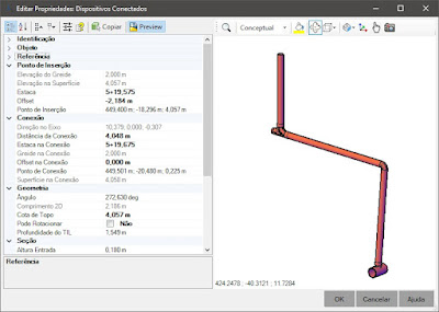 Ramais de ligação predial (TIL), padrão AMANCO, que se conecta ao tubo, mudando a coordenada da conexão em X, Y e Z automaticamente quando o tubo é modificado. Ele pode ler: coordenada e vetor direcional do ponto de conexão. Aliás, assista o vídeo da postagem anterior para entender o que acontece se for necessário relocar o tubo em campo, quando as conexões prediais já estão executadas