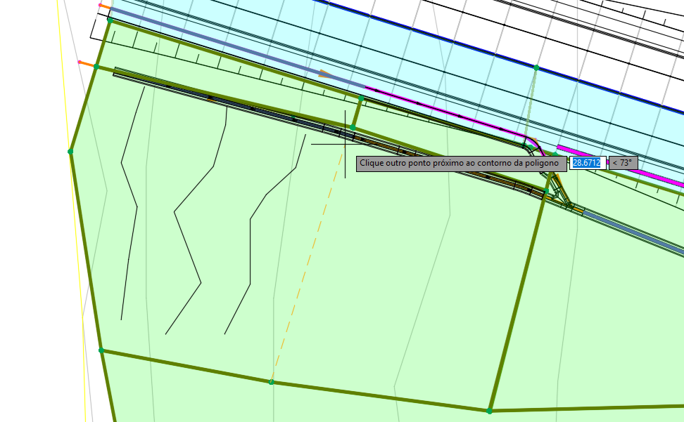Se a bacia de contribuição atingia toda a extensão, então agora metade da bacia atinge o primeiro trecho e a outra metade, o segundo. Para dividir a valeta, usamos o comando SSPLIT: