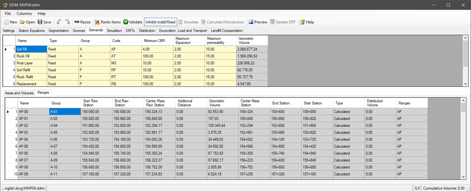 use the cumulative values ??in the Volume column of the Areas and Volumes tab between the start and end steps