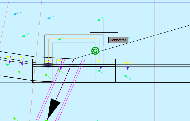 Quando se está lançando a rede, ao aproximar o ponto de inserção da estrutura ao ponto inicial ou final do tubo, o programa mostra que pode conectar: