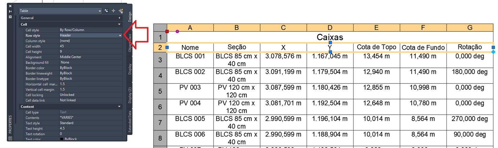 Novo!!!: Uma tabela no AutoCAD pode ter título, cabeçalho e dados. Estes podem ter estilos diferentes uns dos outros, tal como aparece no comando TABLESTYLE, nativo do AutoCAD: