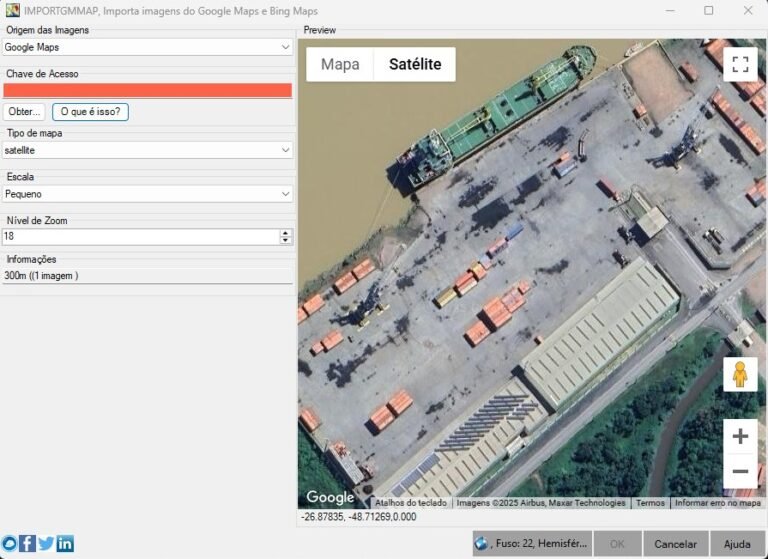 Para usar os plugins IMPORTGMMAP e IMPORTGMPTS com dados do Google Maps, é necessário ter uma chave de acesso das APIs do Google, para os serviços listados abaixo:
