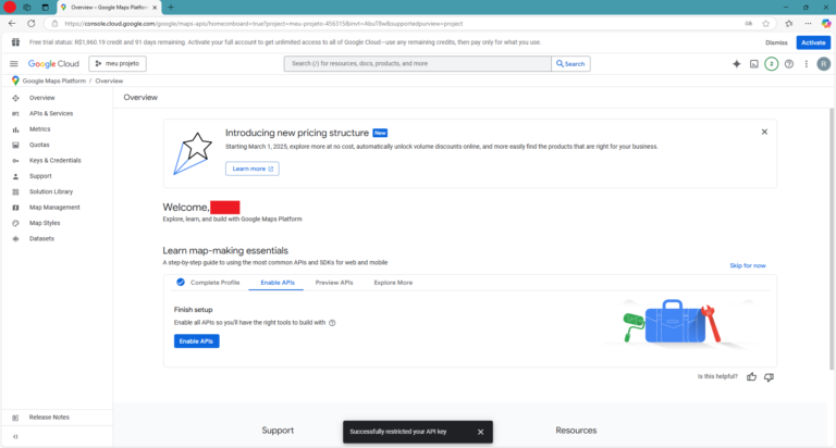 Confira a seguir um passo a passo mostrando como obter uma chave de API do Google Maps: